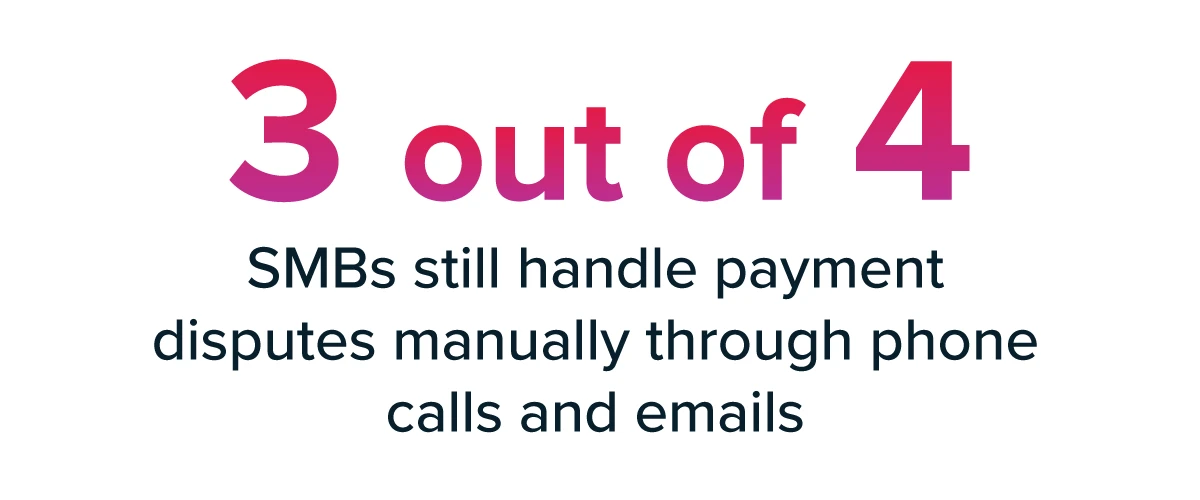 Our research findings speak volumes about the current state of B2B payments: more than 75% of SMBs still handle payment disputes manually through phone calls and emails. This antiquated approach frustrates customers accustomed to consumer-grade digital experiences and creates unnecessary friction in business relationships.